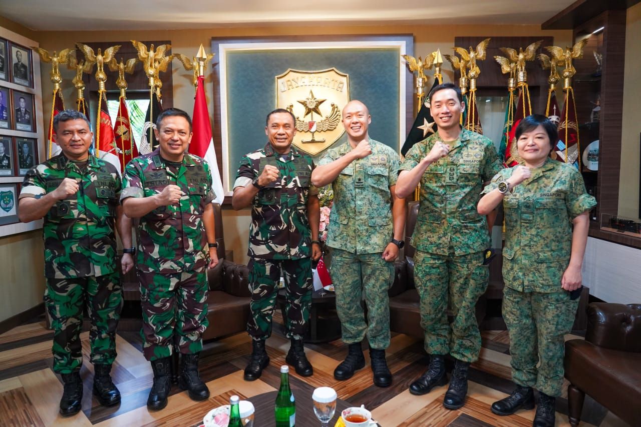 JAKARTA TIMUR (Beritakeadilan, DKI Jakarta) – Kunjungan kehormatan Panglima Divisi 3 Singapura Army Force (SAF) Brigadir General Cai Dexian, Army Attache Republik Of Singapura Kolonel David Kwek dan ME3-3 Mandy Tham ke Kodam Jaya diterima Pangdam Jaya Mayjen TNI Mohamad Hasan di Makodam Jaya. Rabu (30/8/2023).