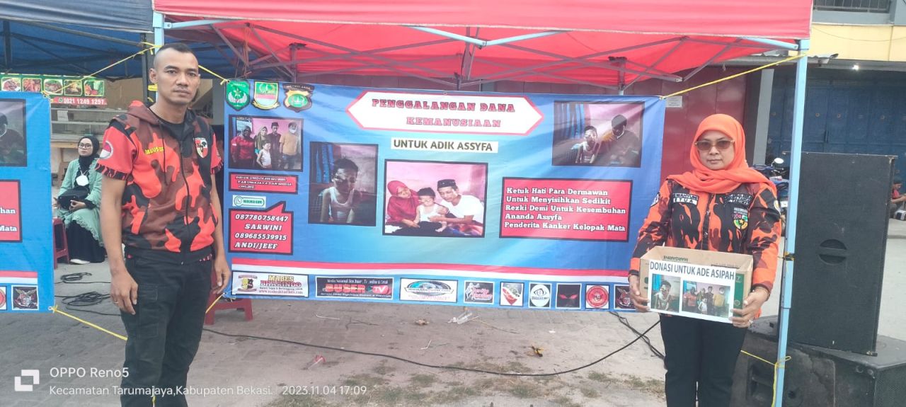 BEKASI (BeritaKeadilan, Jawa Barat) – Bertema “ketuk hati untuk donasi” Pemuda Pancasila (PP) PAC Kecamatan Tarumajaya bersama para Musisi Tarumajaya yang diprakarsai oleh Andi selaku unsur kepemudaan menggelar aksi penggalangan dana bantuan bagi Assyfa seorang anak penderita kanker mata, berlokasi di Desa Segerajaya Kecamatan Tarumajaya Kabupaten Bekasi, pada Sabu/Minggu (4/11/2023).