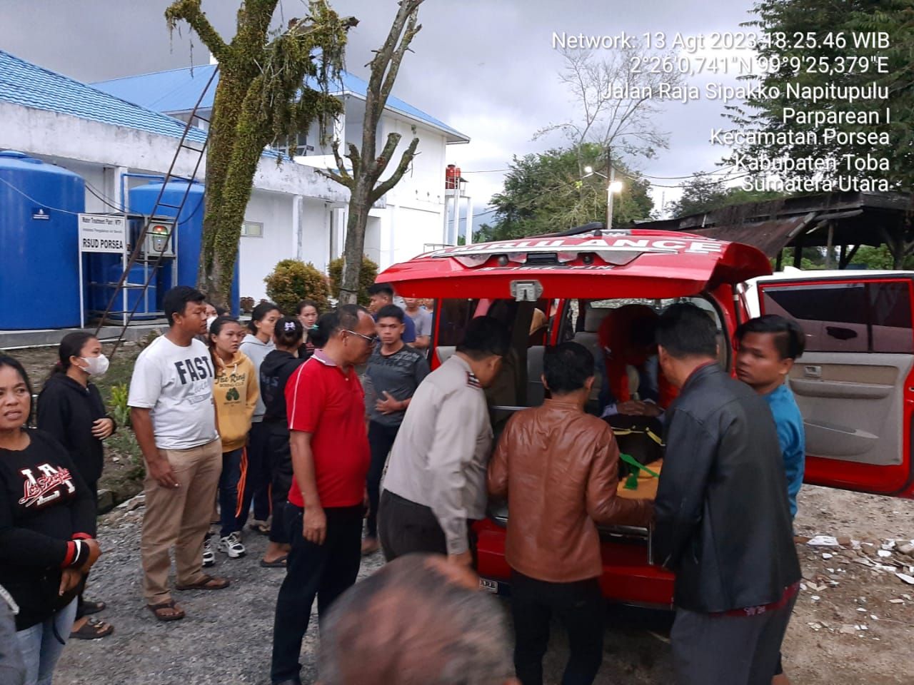 Sebelum korban di bawa ke rumah duka di Medan, Kapolsek Porsea bersama Camat Porsea berupaya untuk membantu meringankan biaya rumah sakit dengan menghubungi Direktur RSUD Porsea. Saat ini Korban Rio Manalu sudah di bawa ke rumah duka dari Rumah Sakit RSUD Porsea pada pukul 18.00 Wib menuju Medan memakai mobil Ambulance PBB. Sementara Berkat Simanjuntak dan Yosua Lenius Sianturi sudah sehat dan pulang bersama rombongan Naposobulung ke Medan.