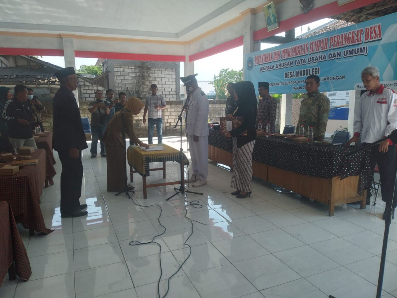 Prosesi pelantikan dan pengambilan sumpah jabatan tersebut dilaksanakan di kantor balai desa dihadiri langsung oleh Forkopimcam kecamatan Sukodadi, perangkat desa, BPD, LPM, tokoh masyarakat serta tamu undangan.