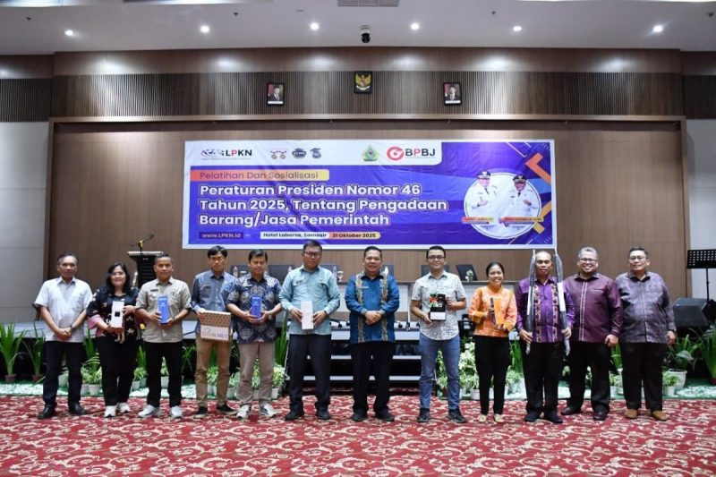 KABUPATEN SAMOSIR (Beritakeadilan.com, Sumatera Utara)-Pemerintah Kabupaten Samosir melalui Unit Kerja Pengadaan Barang/Jasa (UKPBJ) menyelenggarakan Pelatihan dan Sosialisasi Perpres Nomor 46 Tahun 2025 Tentang Pengadaan Barang dan Jasa Pemerintah. Perpres ini merupakan perubahan kedua atas Perpres No. 16 Tahun 2018. Kegiatan ini dirancang untuk peningkatan kapasitas dan kapabilitas sumber daya manusia aparatur Pemkab. Samosir. Meningkatkan transparansi, efisiensi, dan akuntabilitas dalam pengadaan barang/jasa pemerintah. Acara dibuka resmi oleh Bupati Samosir diwakili Asisten II Hotraja Sitanggang di Hotel Labersa, Jumat (31/10/2025).
