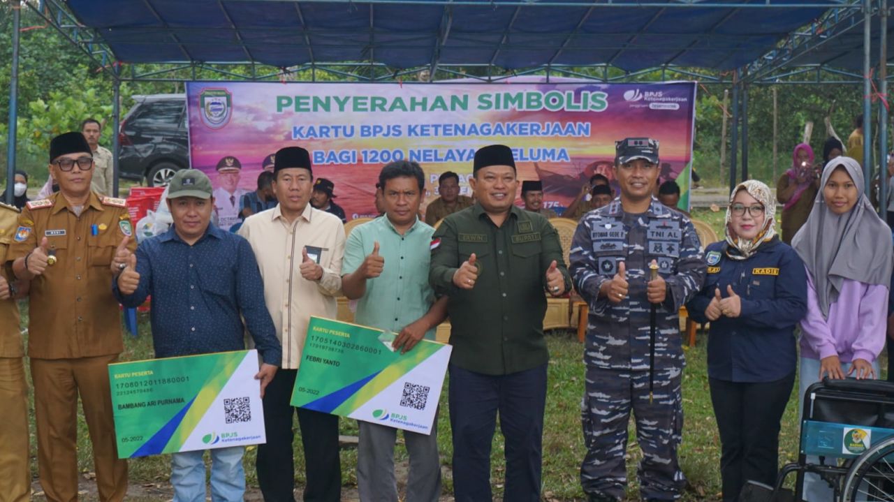 Sebelum peninjauan Karya Bakti, Danlanal Bengkulu bersama Bupati Seluma menyerahkan Kartu Asuransi BPJS Ketenagakerjaan kepada 1200 masyarakat nelayan binaan Posal Seluma di Desa Penago I Kecamatan Ilir Talo Kabupaten Seluma.
