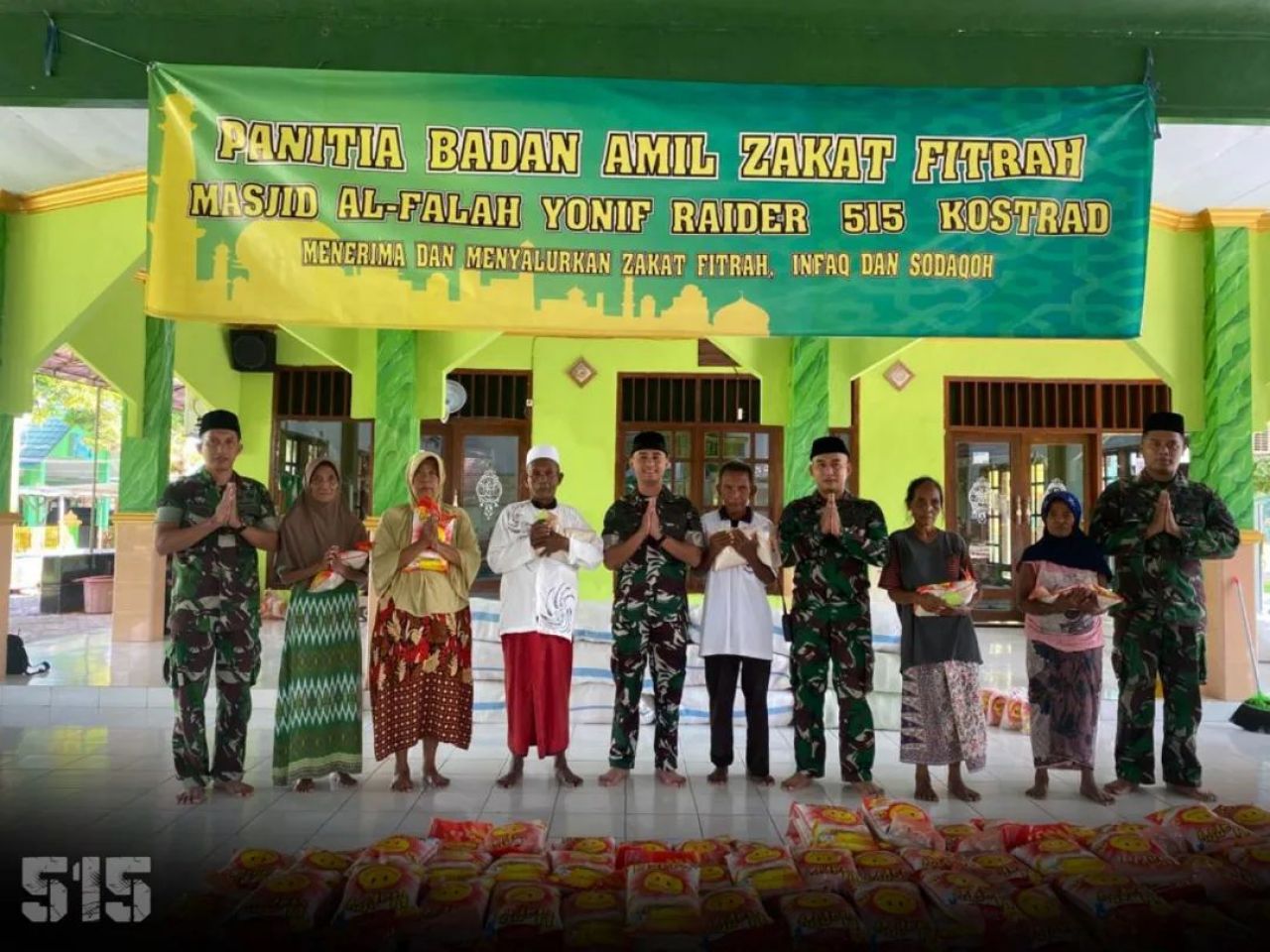 Sebanyak kurang lebih 2.68 ton beras yang telah dikemas menjadi 1.075 paket terkumpul dari personel personil Yonif Raider 515 Kostrad serta tambahan dari anggota keluarga lainnya. Zakat fitrah ini disalurkan kepada masyarakat yang membutuhkan di sekitar wilayah Asmil Yonif Raider 515 Kostrad.