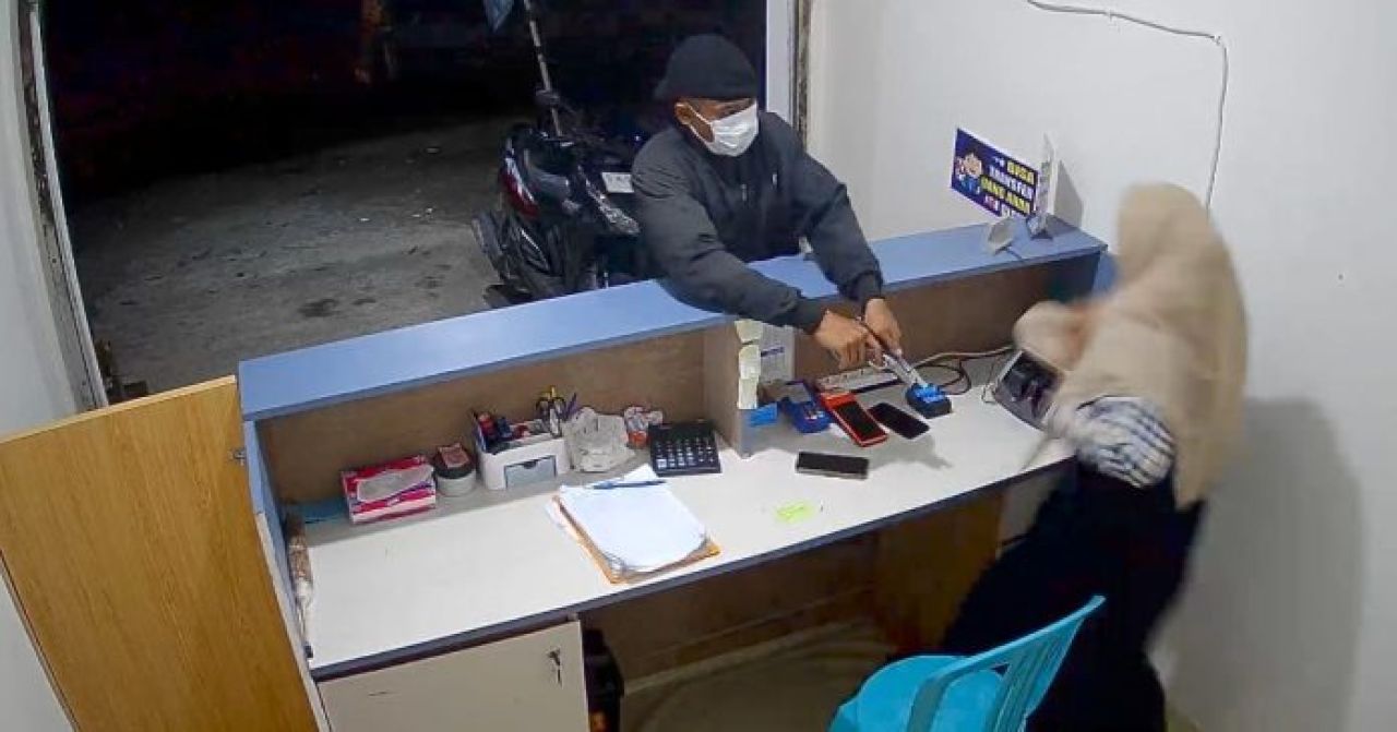 Dalam rekaman kamera pengawas milik gerai tersebut, pelaku tampak menodongkan pistol ke arah karyawan penjaga agen BRILink yang sedang berada di meja kasir.