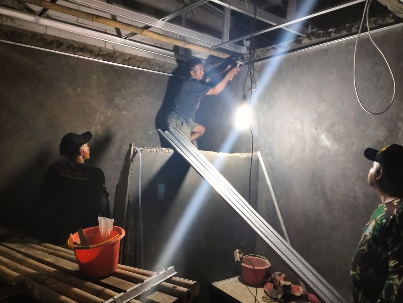 Karena batas waktu sudah mendekati, Tim Satgas TMMD 116 terus kebut pengerjaan pembangunan rutilahu, yakni pemasangan plafon dan atap teras depan rumah. Kata Serma Muharam.