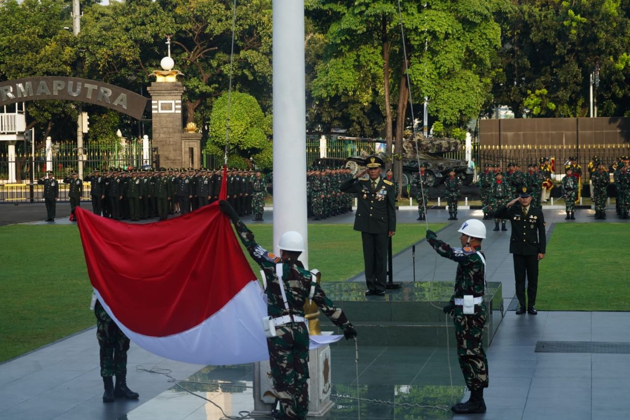JAKARTA PUSAT (Beritakeadilan, DKI Jakarta) – Markas Kostrad menggelar Upacara Peringatan Hari Lahir Pancasila yang diikuti oleh seluruh personel baik militer maupun PNS TNI jajaran Markas Kostrad, dengan Inspektur Upacara Irkostrad Mayjen TNI Mochamad Reza Utama, bertempat di lapangan Markas Kostrad, Gambir, Jakarta Pusat. Kamis (1/06/2023).