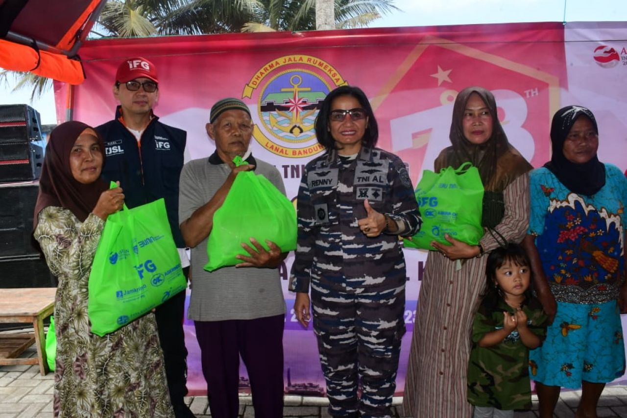 Komandan Lanal Bandung Kolonel Laut (KH/W) Dr. Renny Setiowati, S.T., M.Sc., M.Tr. Hanla., didampingi Danposal Pangandaran dalam sambutannya menyampaikan bahwa kegiatan Bakti Sosial yang dilaksanakan hari ini merupakan rangkaian dalam rangka menyambut HUT Ke-78 TNI Angkatan Laut yang diberikan kepada masyarakat yang membutuhkan yakni disekitar Posal Pangandaran.