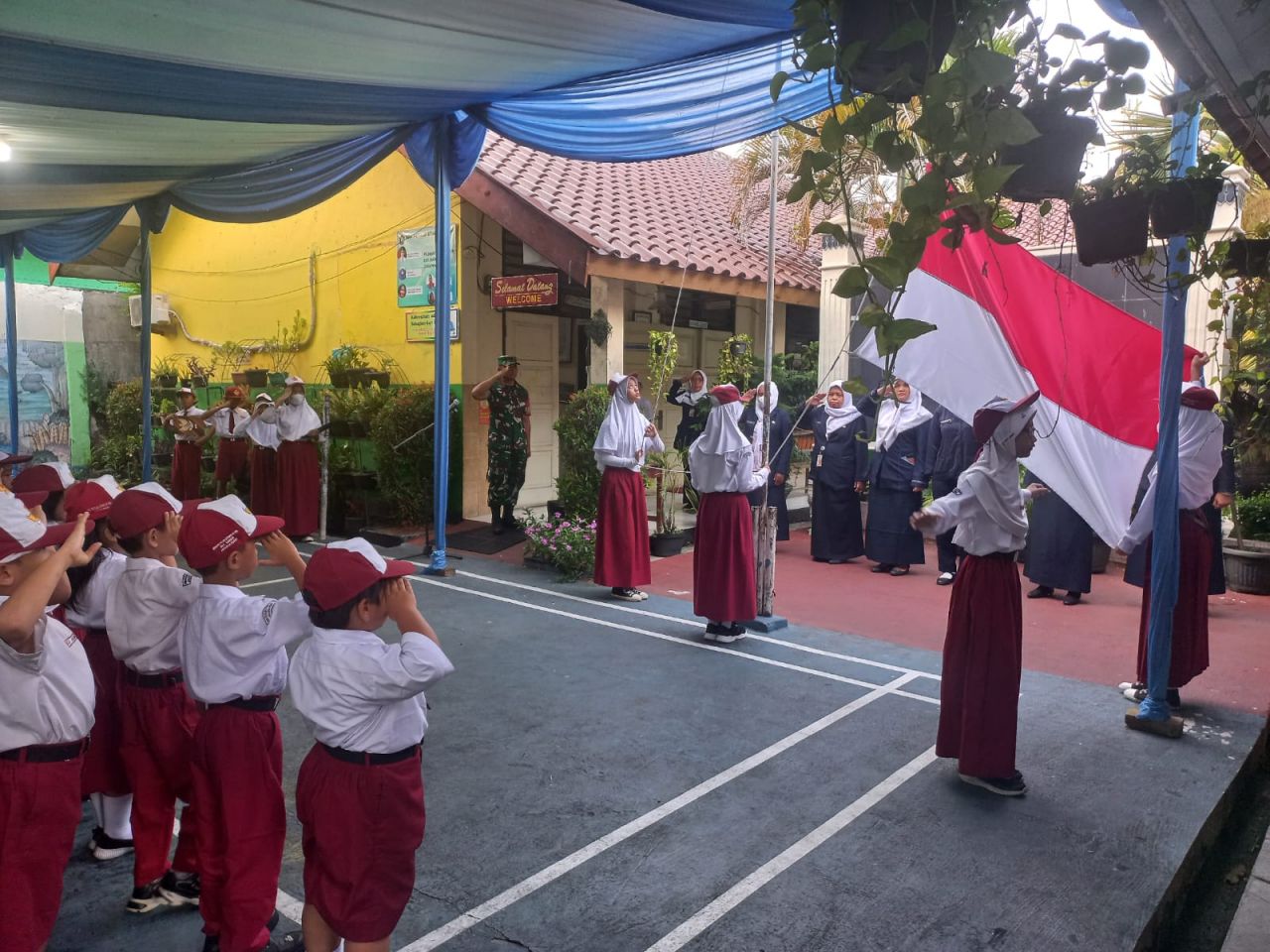 Perkokoh Nilai Nilai Pancasila Babinsa Koramil 04 Gambir/0501 JP Pimpin Upacara Bendera di SDN 01 Petojo Gambir