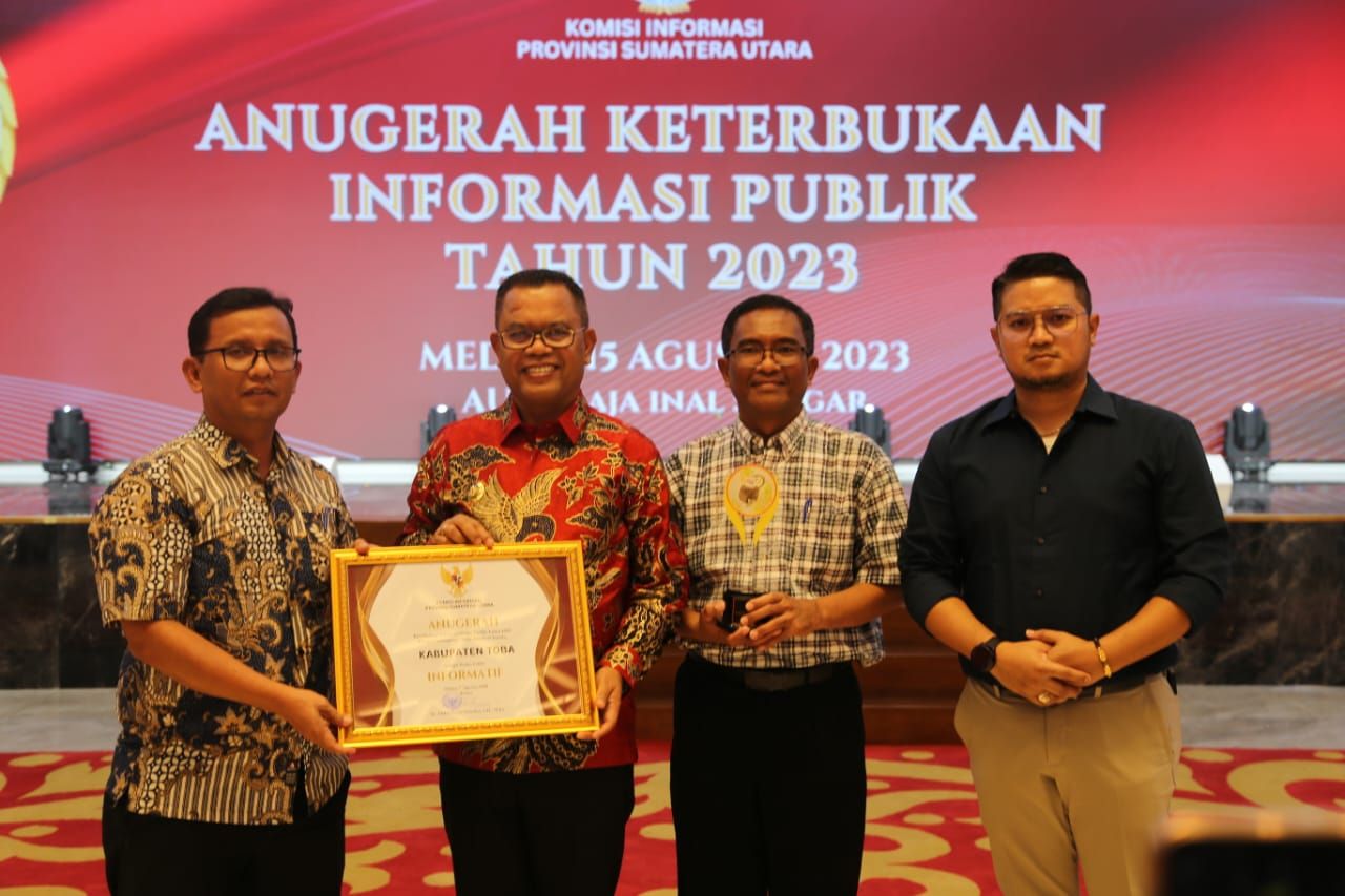 Penghargaan ini diserahkan Gubernur Sumatra Utara (Sumut) yang diwakili Asisten Perekonomian didampingi Ketua Komisi Informasi Provinsi (KIP) Sumut kepada Bupati Toba, Poltak Sitorus di Aula Raja Inal Siregar Lantai 2 Kantor Gubernur Sumatera Utara Jl. Pangeran Diponegoro Nomor 30 Medan, Selasa (15/8/2023).