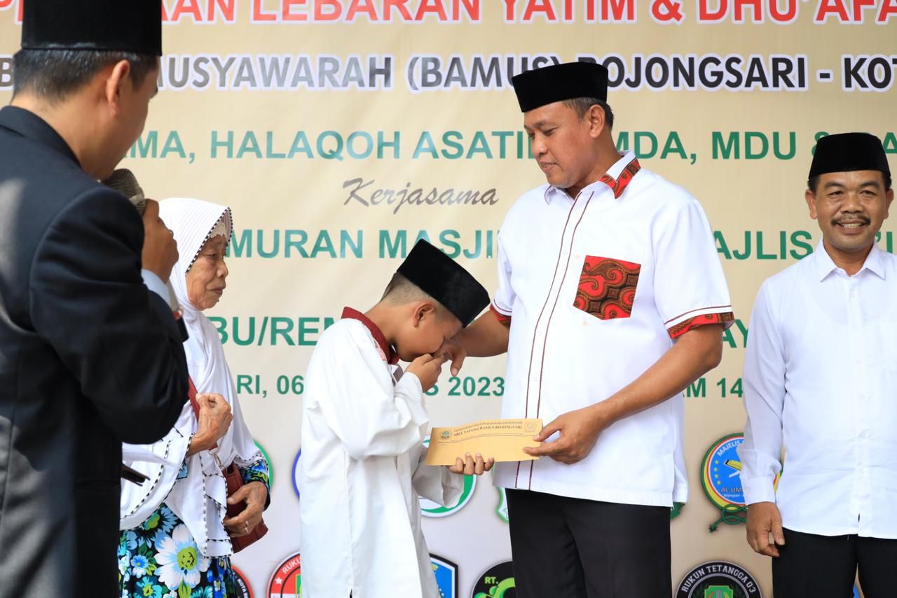 KOTA BEKASI (Beritakeadilan, Jawa Barat) – Plt. Wali Kota Bekasi, Tri Adhianto hadiri Lebaran Yatim dan Dhuafa yang digelar oleh Yayasan Badan Musyawarah (BAMUS) Bojongsari. Acara tersebut dikemas dengan pemberian santunan untuk Anak Yatim dan Dhuafa di lingkungan sekitar pada Minggu, (06/08)