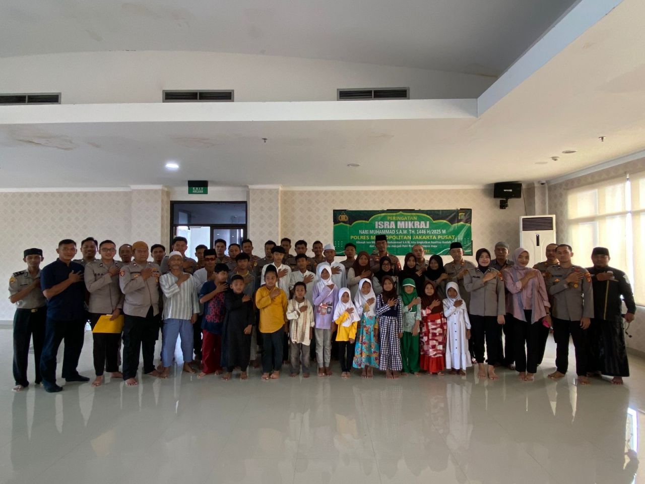 JAKARTA PUSAT (Beritakeadilan.com, DK Jakarta) – Polres Metro Jakarta Pusat menggelar peringatan Isra Mikraj Nabi Muhammad S.A.W. 1446 H/2025 M yang dirangkaikan dengan kegiatan santunan anak yatim piatu. Acara yang berlangsung di Masjid Al-Ikhlas, lantai 6 Polres Metro Jakarta Pusat ini dihadiri oleh jajaran kepolisian serta anak-anak yatim piatu beserta pendampingnya, Jum’at (7/2/2025).