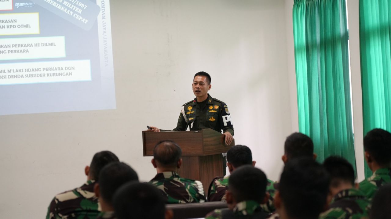 Untuk itu Pomdam Jaya/Jayakarta melalui Kasigakkum Kapten Cpm Hugo Adi Nugroho, S.S.T.Han., S.I.P., M.H memberikan penyuluhan penegakkan hukum dan Sosialisasi UU LLAJ No.22 Tahun 2009 di Pusdikkesad Puskesad Jl.Mayjend Soetoyo Jakarta Timur, Jumat (21/7/23).
