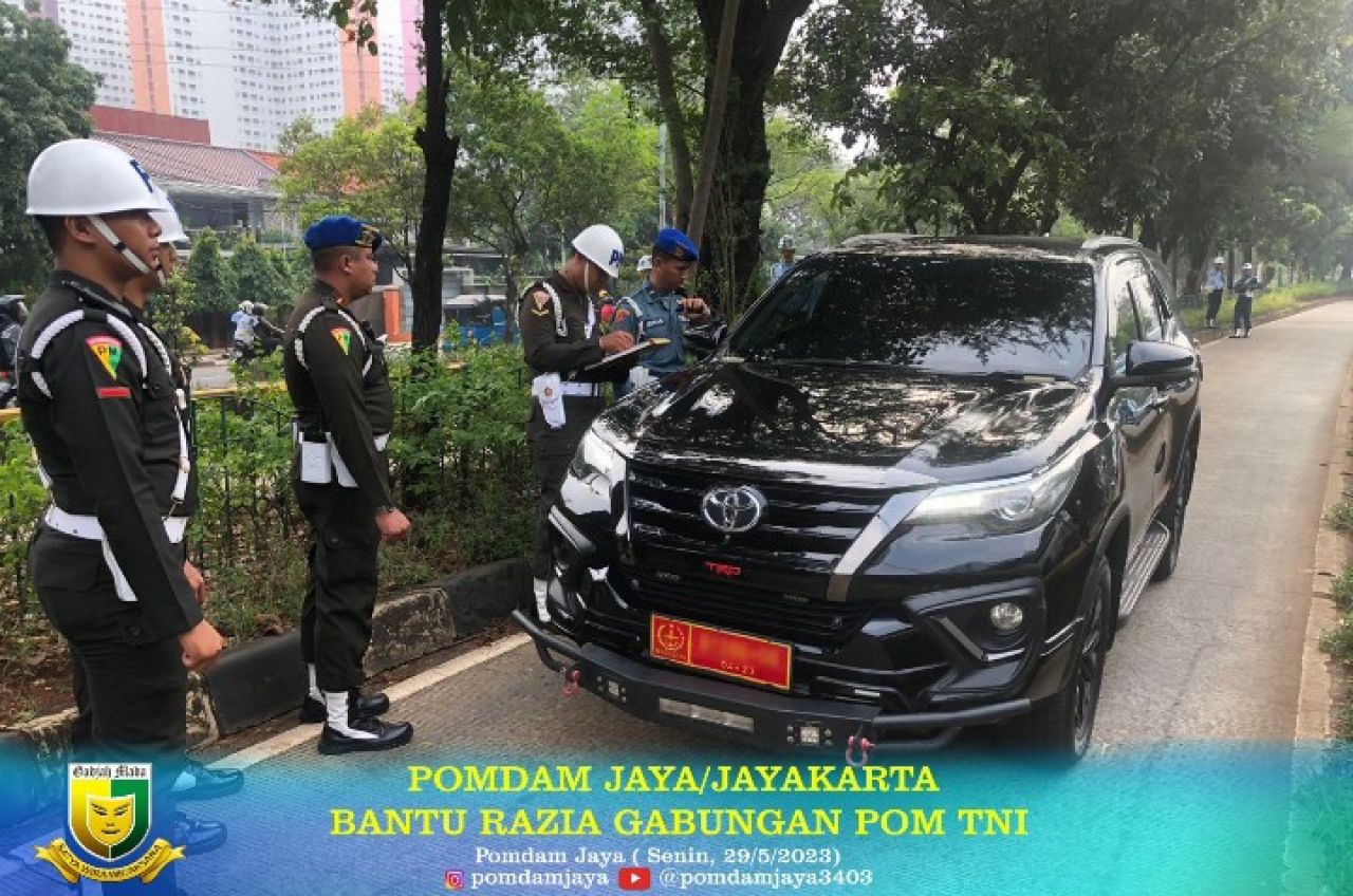 Sebelum Razia dimulai dilaksanakan Apel pengecekan gabungan Bersama Propam Polda Metro Jaya dan Ditlantas Polda Metro Jaya, nampak di lapangan personil Pomdam Jaya beserta jajarannya, menghentikan setiap Anggota TNI yang melintas ditempat Razia, maupun warga sipil yang menggunakan kendaraan berplat Nomor Kendaraan Dinas TNI, setelah diadakan pemeriksaan kelengkapan surat-surat kendaraan dll, setelah dinyatakan lengkap dipersilahkan melanjutkan perjalannya, bagi yang tidak lengkap atau adanya penyalahgunaan penggunaan Plat Nomor kendaraan, maka dilakukan penilangan maupun proses lanjutan.