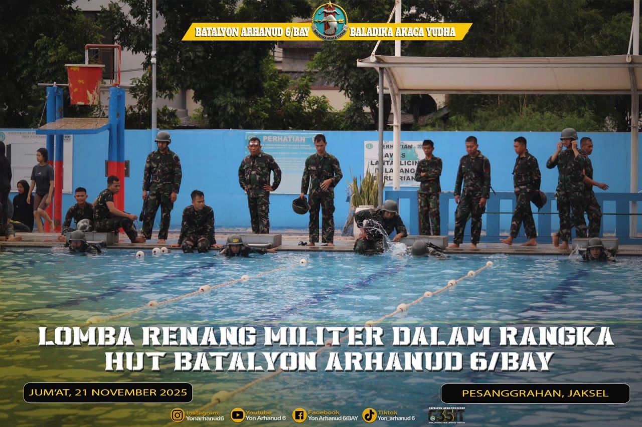 JAKARTA SELATAN (Beritakeadilan.com, DK Jakarta) -Suasana penuh semangat dan sportivitas tampak di Kolam Renang Gagak Hitam, Pesanggrahan, Jakarta Selatan, pada Jum’at, 21 November 2025, saat Batalyon Arhanud 6/BAY menggelar Lomba Renang Militer dalam rangka memeriahkan Hari Ulang Tahun satuan tersebut.