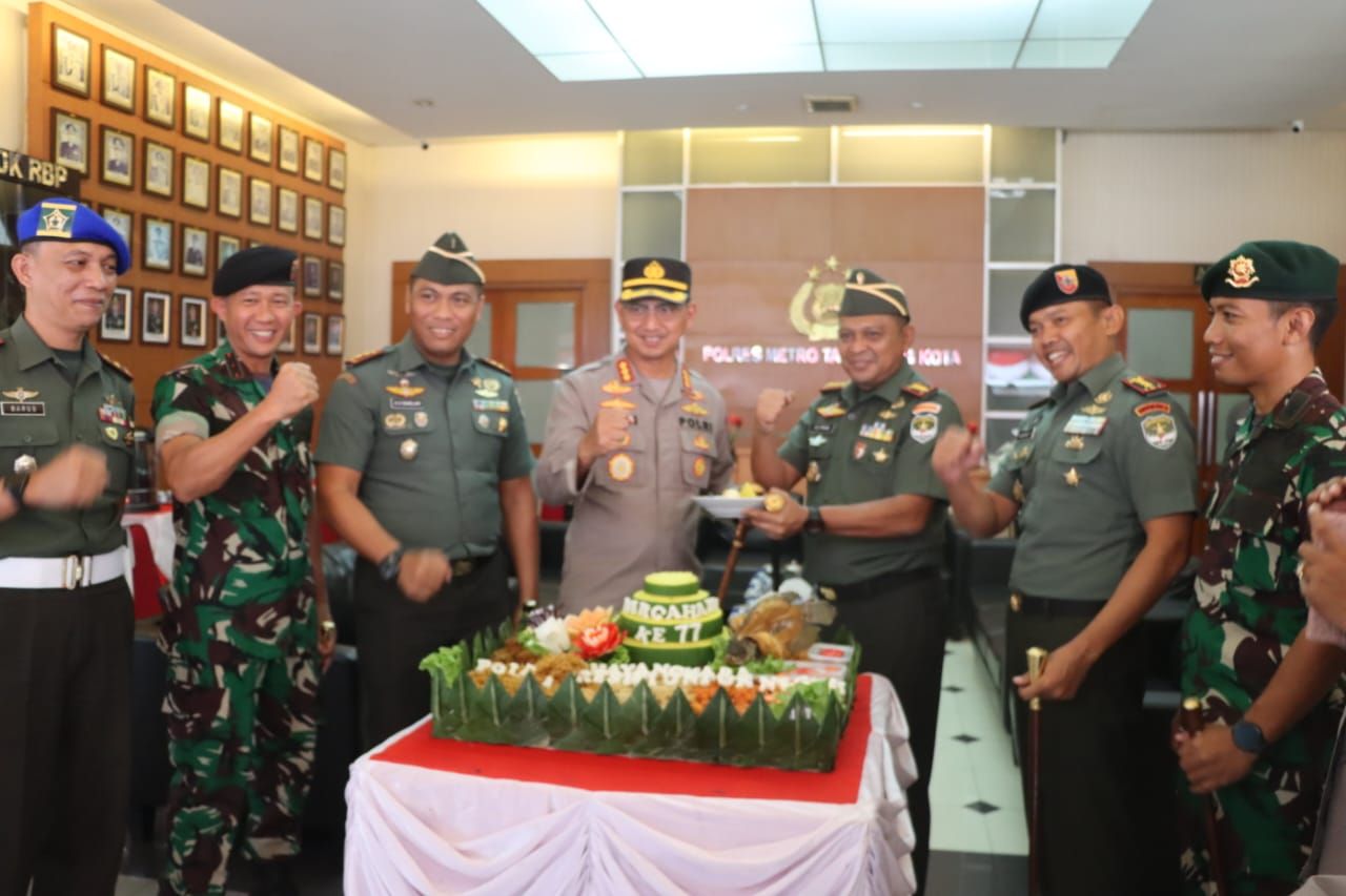 Acara dilanjutkan dengan pemotongan tumpeng dan kue ulang tahun yang dibawa masing-masing rombongan TNI tersebut, dilanjutkan dengan ramah tamah dan diakhiri dengan sesi foto bersama di lapangan apel Polres Metro Tangerang Kota. Kegiatan selesai pada pukul 12.00 WIB dalam keadaan aman dan kondusif.