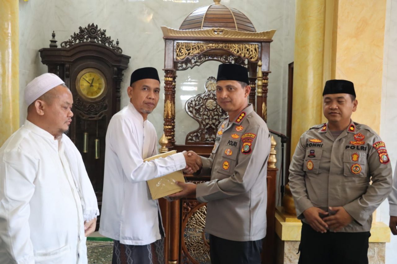 Diakhir pertemuan Jumat curhat itu, Kapolres juga menyerahkan bantuan berupa Al-quran kepada DKM Masjid Al-Barokah untuk dapat dipergunakan jamaah masjid itu.