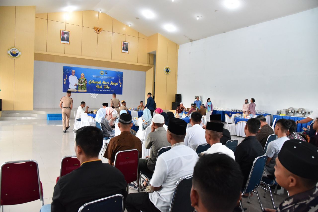 Acara kemudian dilanjutkan dengan Halal Bihalal di Gedung Malahayati Satrol Lantamal XII bersama Danlantamal XII Laksamana Pertama TNI Dr. Suharto bersama Keluarga Besar Prajurit dan PNS Lantamal XII.