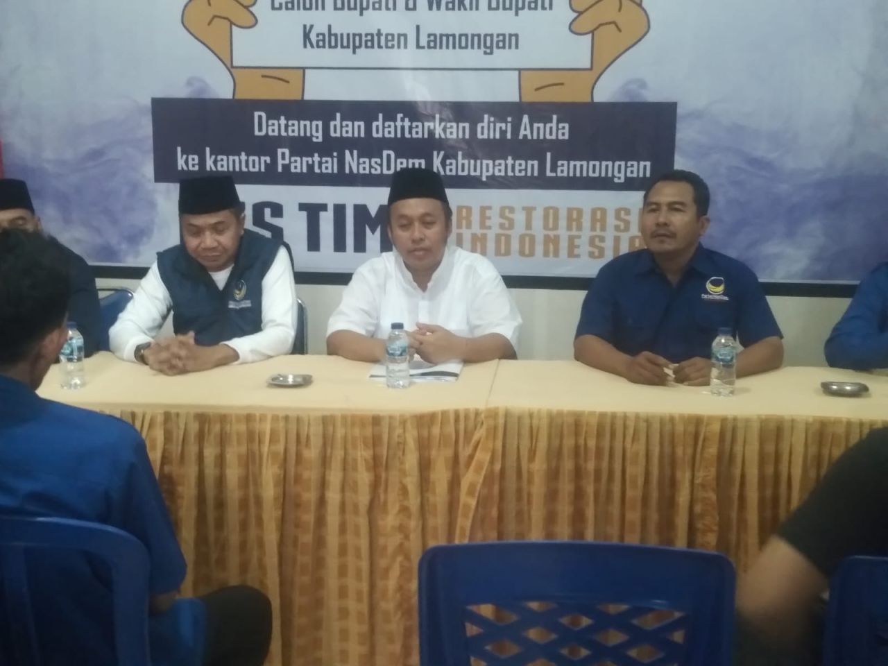 Ia datang ke kantor DPD NasDem Lamongan yang berada di Jalan Jaksa Agung Suprapto No 48 Lamongan itu bersama dengan rombongan. Debby Kurniawan tiba pada pukul 15.38 WIB.