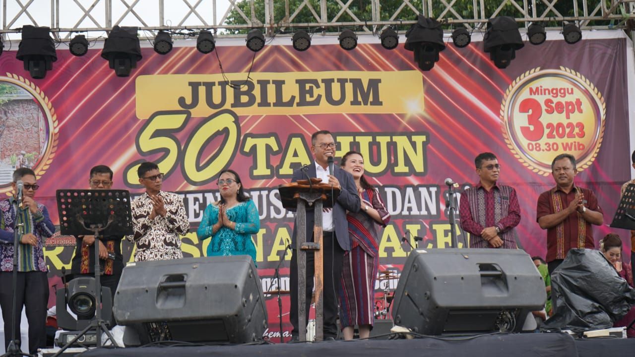 “Jubileum itu adalah sukacita. Jadi mari kita bersukacita atas perayaan Jubileum 50 Tahun Monumen Pusaka Padan ni Raja Sonak Malela,” kata Poltak Sitorus mengawali sambutannya.