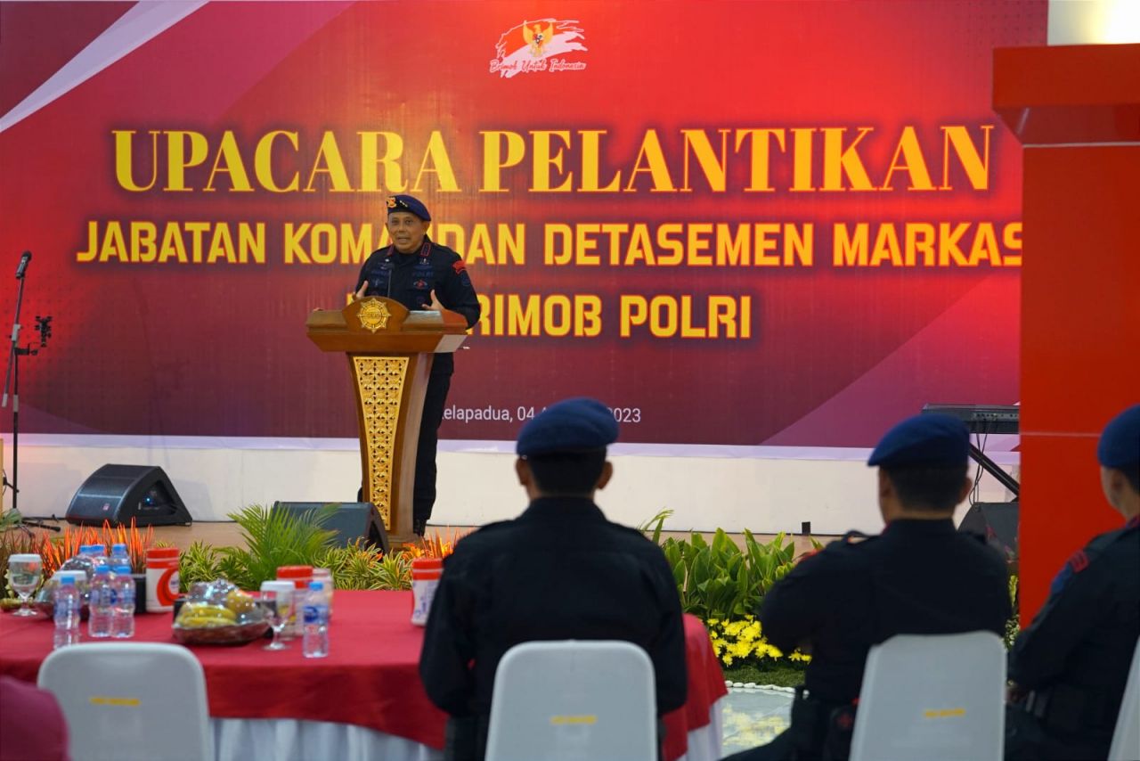 DEPOK (Beritakeadilan, Jawa Barat) – Upacara pelantikan jabatan Komandan Detasemen Markas (Dandenma) Korbrimob Polri dipimpin langsung Komandan Korps Brimob Polri Komjen Pol. Drs. Anang Revandoko, M.I.Kom. berlangsung di gedung setia Kesatrian Amji Attak, Cimanggis Kelapadua. Kota Depok. Jawa Barat. Jumat (04/08) pagi.