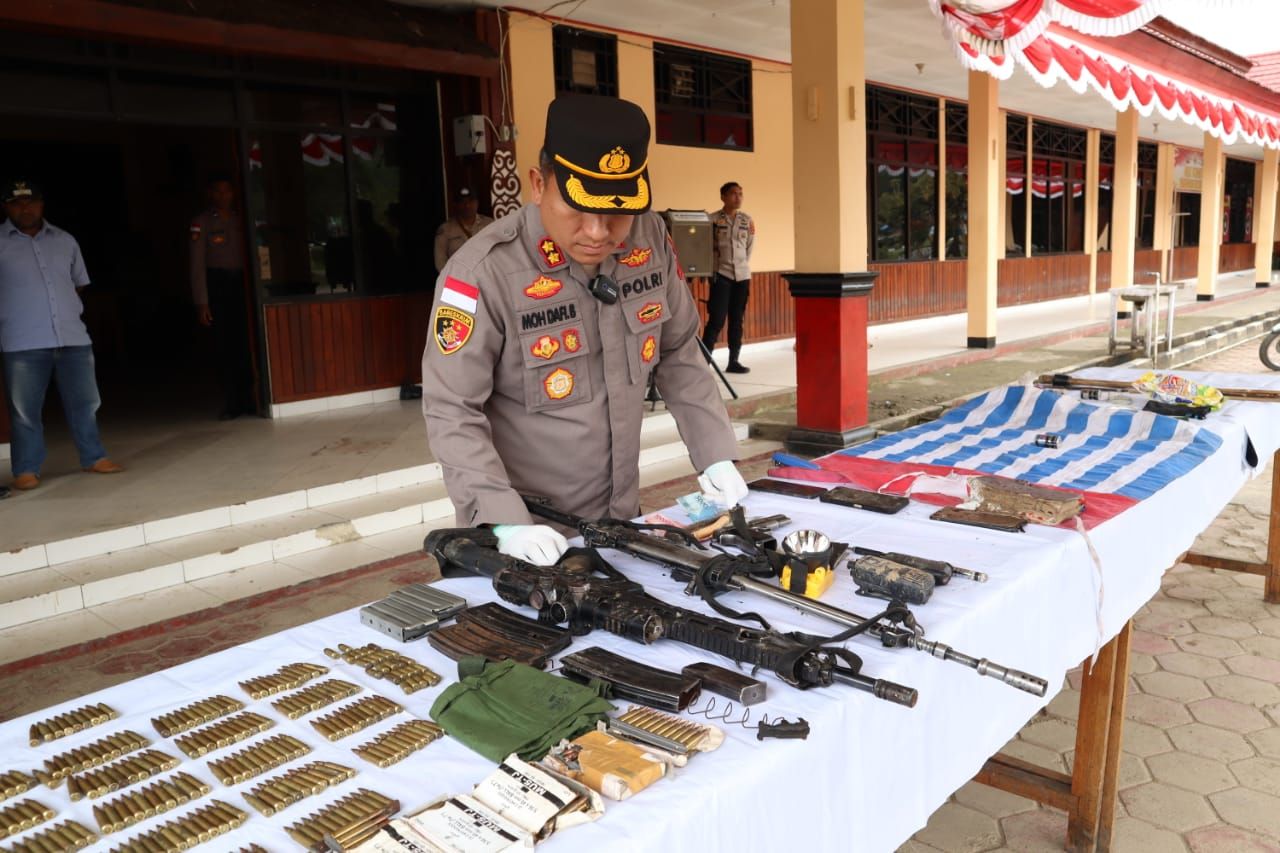 Ditempat lain, Kasatgas Humas, AKBP Dr. Bayu Suseno menyampaikan senpi yang berhasil diamankan adalah 1 (satu) pucuk senpi laras panjang jenis SS1 tanpa Lade, 1 (satu) pucuk senpi laras panjang jenis USA NOUVES (varian M4) dan 1 (satu) pucuk senpi pendek jenis FN.