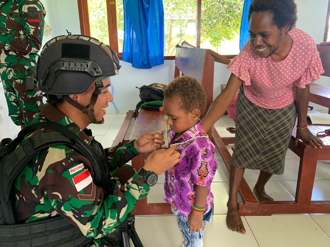 “Saya senang dengan kehadiran TNI di Gereja kami dan saya merasa terhormat dengan dikalungkan rosario ini oleh bapak TNI,” ungkap Mariam.