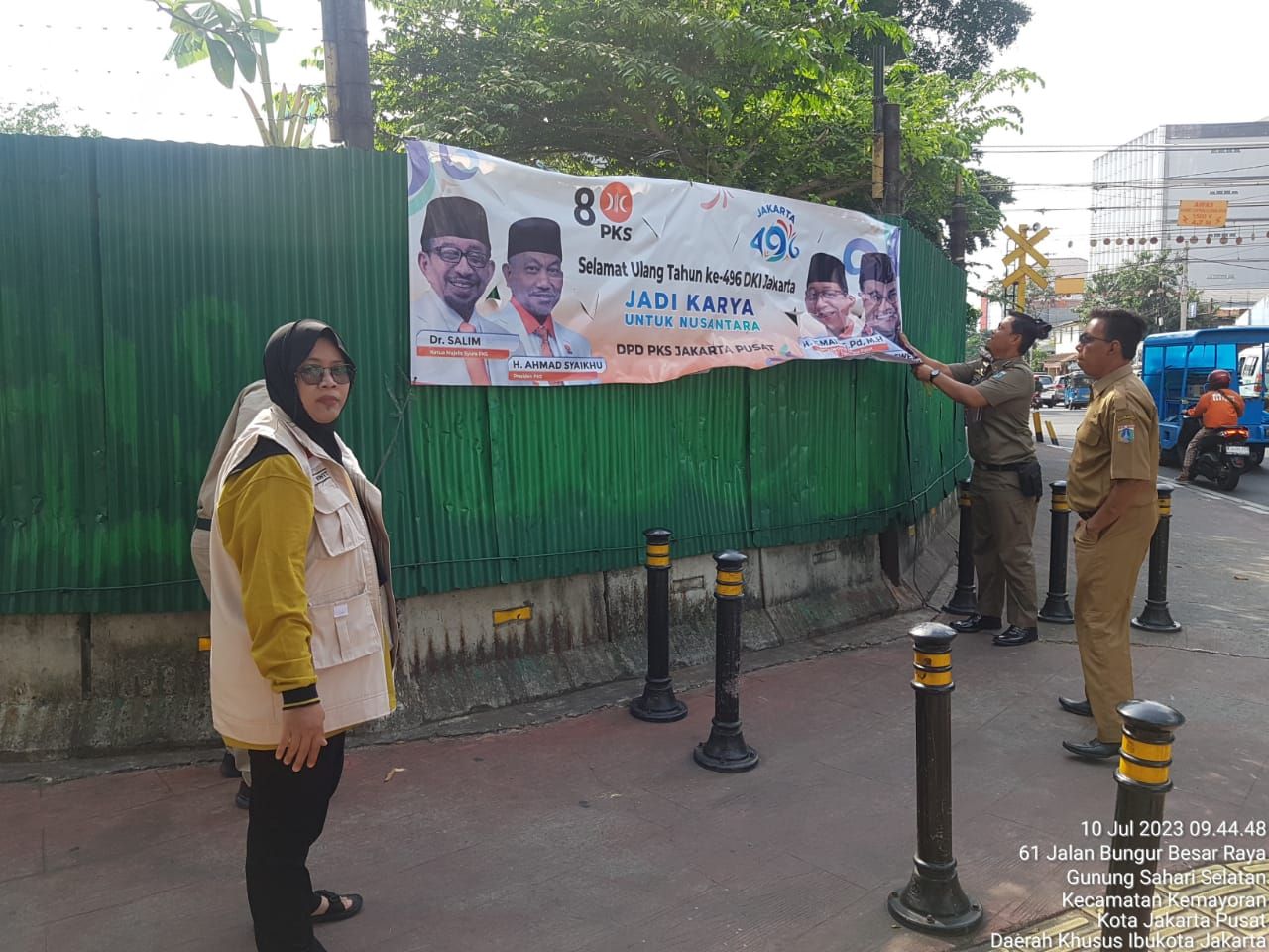 “Giat hari ini adalah penertiban spanduk spanduk yang melanggar ketentuan, misalnya spanduk komersial yang tidak memiliki izin dan spanduk spanduk partai yang sudah berakhir masa rekomendasinya,seperti ucapan Idul Adha,” jelas Syahrudin.