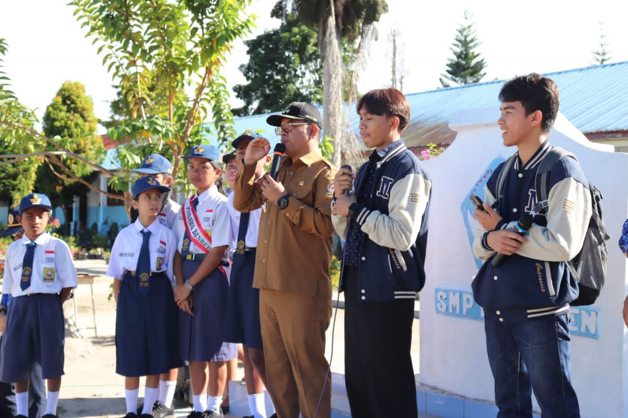 Jawaban bersemangat meraih cita-cita itu diperoleh setelah Bupati Poltak bersama dua mahasiswa berprestasi Kevin dan Arman memberikan motivasi belajar kepada para siswa dalam rangkaian memberikan arahan pada Upacara Bendera yang digelar di Halaman SMP Negeri 1 Silaen, Kecamatan Silaen, Kabupaten Toba, Senin (17/7/2023).
