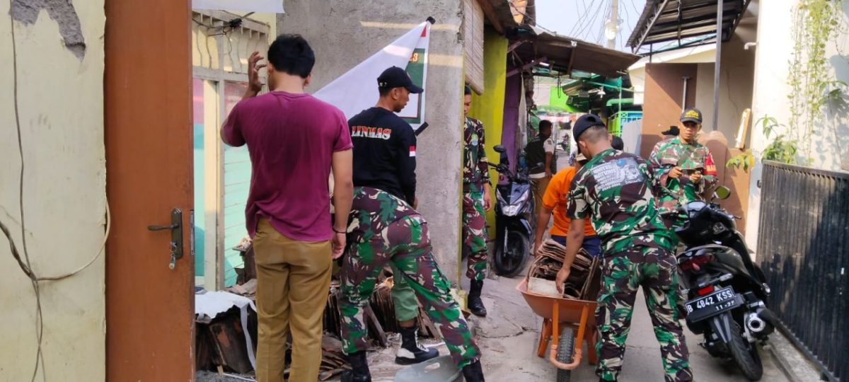 KOTA BEKASI (Beritakeadilan, Jawa Barat) – Aparatur Pemerintah Kecamatan Bekasi Selatan dan Kelurahan Jakamulya Bersama personil Linmas Kelurahan Jakamulya berkesempatan mengikuti kegiatan TNI Manunggal Membangun Desa (TMMD) 116 Kodim 0507/Bekasi yang diadakan oleh TNI AD.