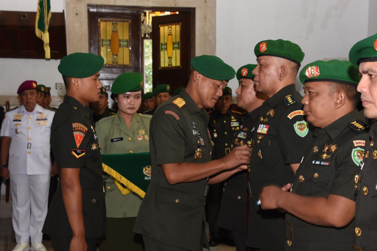 Sebagai bentuk penghargaan, Pangdam III/Slw memberikan piagam dan cindera mata kepada para pejabat lama atas dedikasinya selama bertugas di Kodam III/Slw diikuti oleh para Pejabat jajaran Kodam III/Slw.
