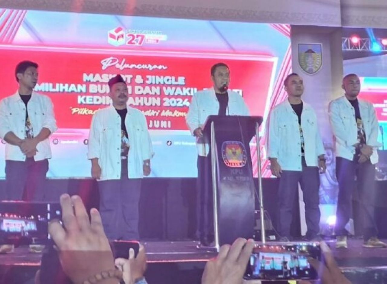 KABUPATEN KEDIRI (Beritakeadilan, Jawa Timur) – Komisi Pemilihan Umum Kabupaten Kediri (KPU),perkenalkan Maskot dan Jingle serta Tagline untuk Pilkada Kabupaten Kediri 2024.bertempat dilapangan Pemkab Kediri.Jumat malam (27/6).