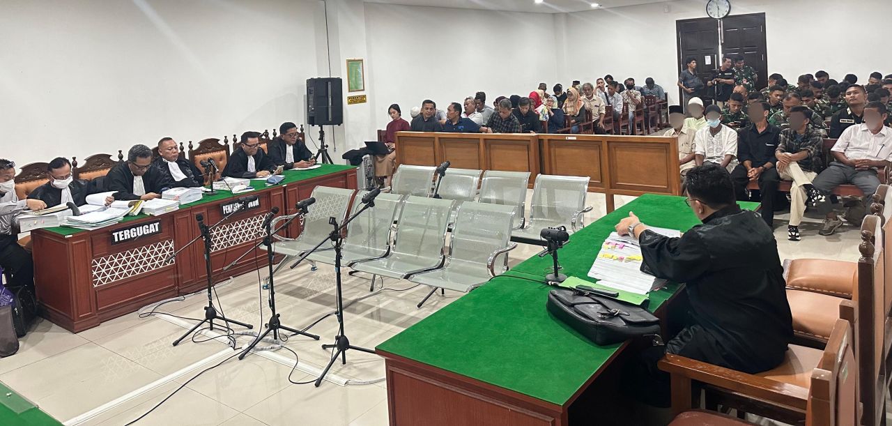 Sidang yang digelar kali ini masih pada agenda pemeriksaan para saksi dipimpin oleh Majelis Hakim Basuki Wiyono, S. H., M.H., dengan Hakim Anggota 1 Sorta Ria Neva, S.H., Hakim Anggota 2 Joko Saptono, S.H., M.H., Panitera Pengganti Nining Anggraini K, S.H., Jaksa Penuntut Umum (JPU) Heru Saputra , S.H., M.Hum., dan Pengacara Tersangka diantara: Jhon, S.E., Panggabean, S.H., M.H., Daance Yohanes, S.H., Togap L. Panggabean, S.H., Mangasi Ambarita, S.H., Ganti Lombantoruan, S.H., M.H.