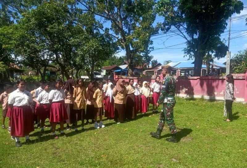 HALMAHERA UTARA (Beritakeadilan, Maluku Utara) – Menanamkan disiplin sejak dini kepada anak sekolah, Satgas Yonarhanud 3/YBY melatih keterampilan dasar Peraturan Baris Berbaris (PBB) di SD Inpres 1 Bertingkat Tobelo.