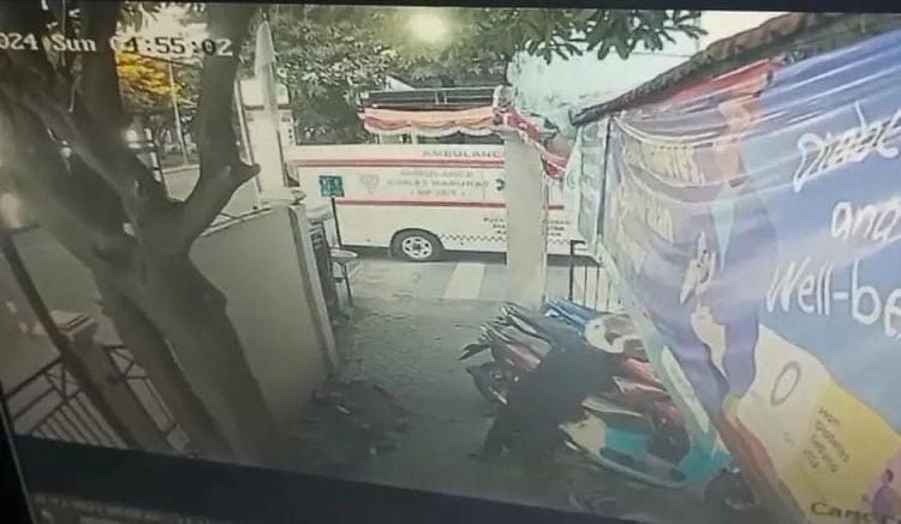 Dalam rekaman itu, nampak terlihat dua orang pelaku, berjaga di luar area parkir, sementara satunya lagi berjalan masuk ke halaman puskesmas.
