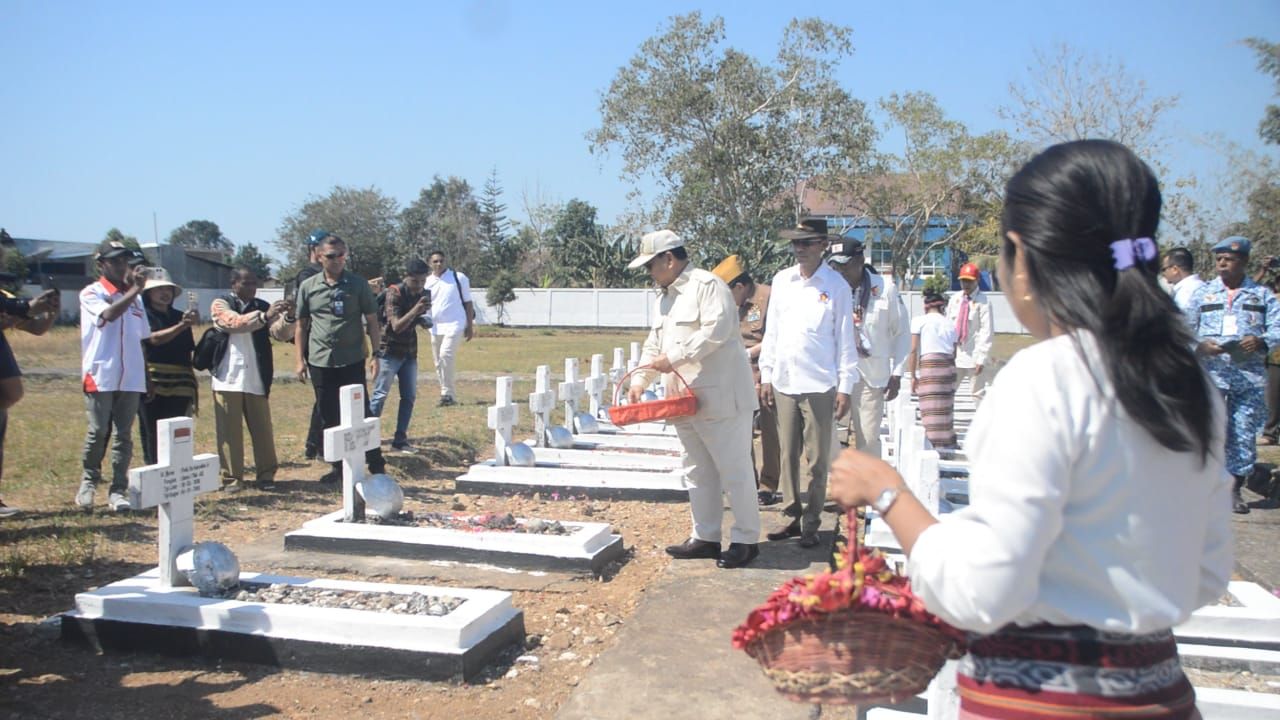 Kegiatan Menhan ini dalam rangka mengenang 48 Tahun jasa para pahlawan yang gugur di Timor Timur. Menhan Prabowo dalam kesempatan itu, tampak meletakkan karangan bunga dan menaburkan bunga ke para Pejuang Pahlawan Timor Timur.