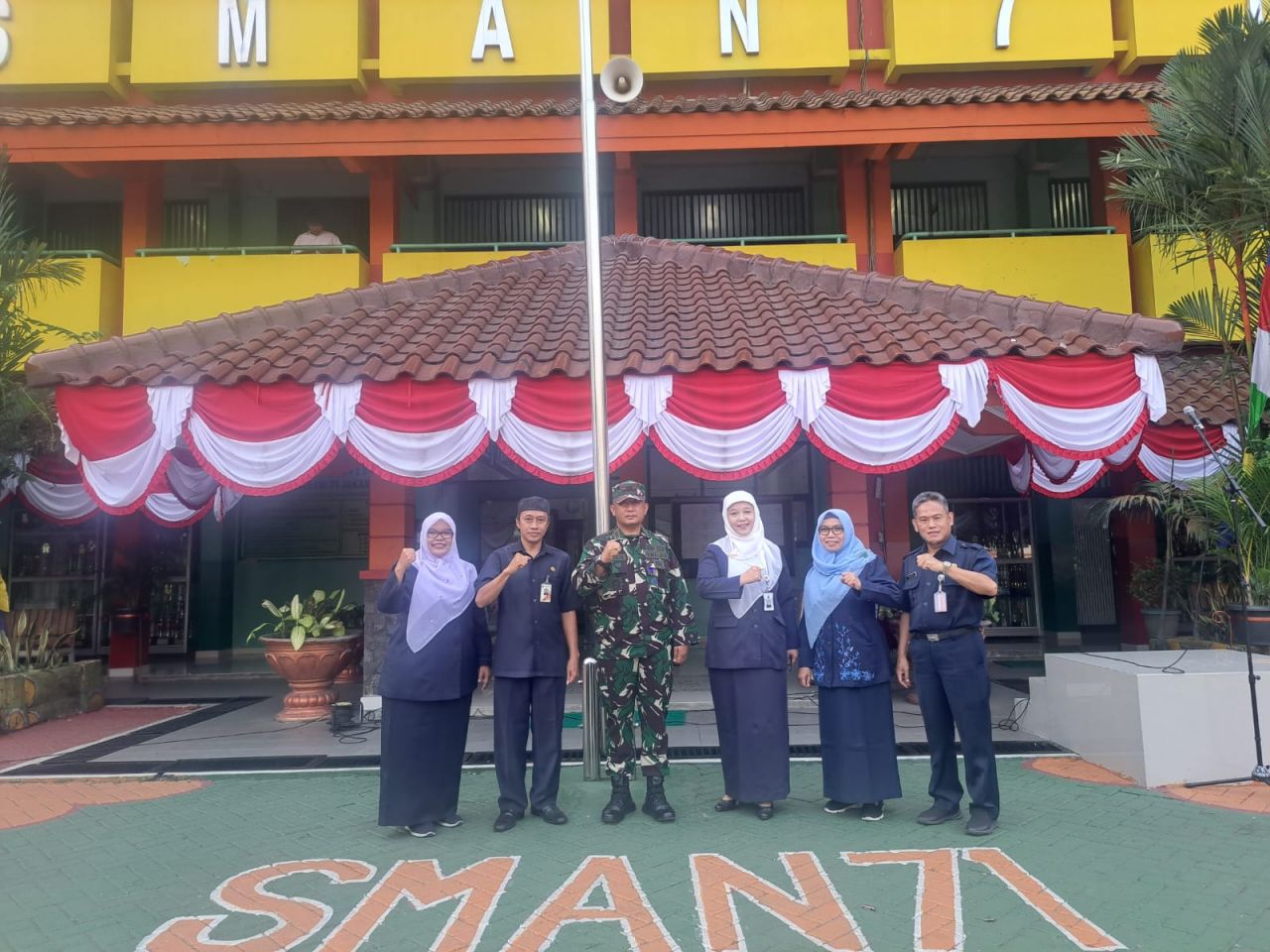 Hadir dalam kegiatan Upacara, Danramil Duren Sawit Kapten Inf Hadi Sasmungi beserta para Babinsa, Kepala Sekolah SMAN 71 Niyata Sirat beserta para guru pembimbing dan seluruh Siswa-siswi SMAN 71.