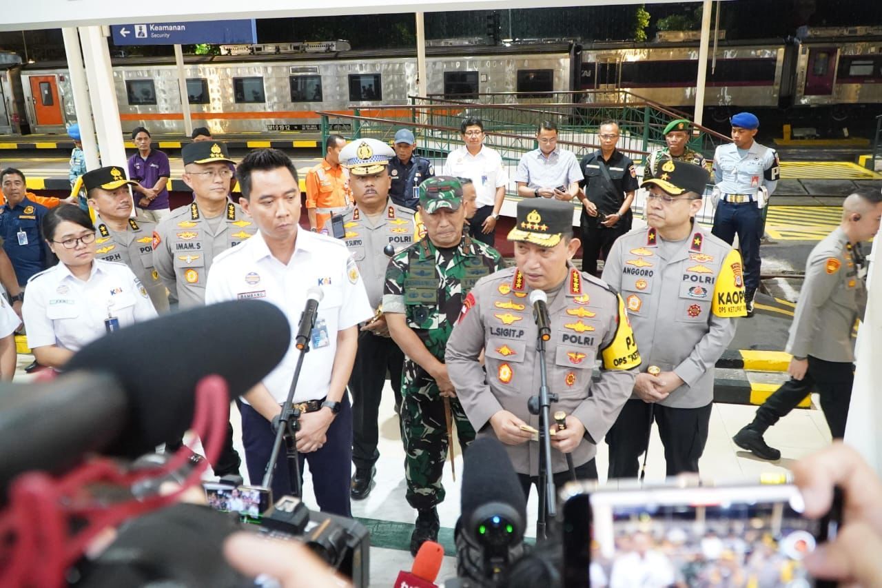 YOGYAKARTA (Beritakeadilan.com, Jawa Tengah) – Kapolri Jenderal Listyo Sigit Prabowo meninjau Stasiun Tugu Yogyakarta dalam rangka pengamanan mudik Lebaran 2025, Jumat (28/4/2025). Berdasarkan pantauan, terjadi peningkatan arus lalu lintas kereta api dibanding hari biasanya.