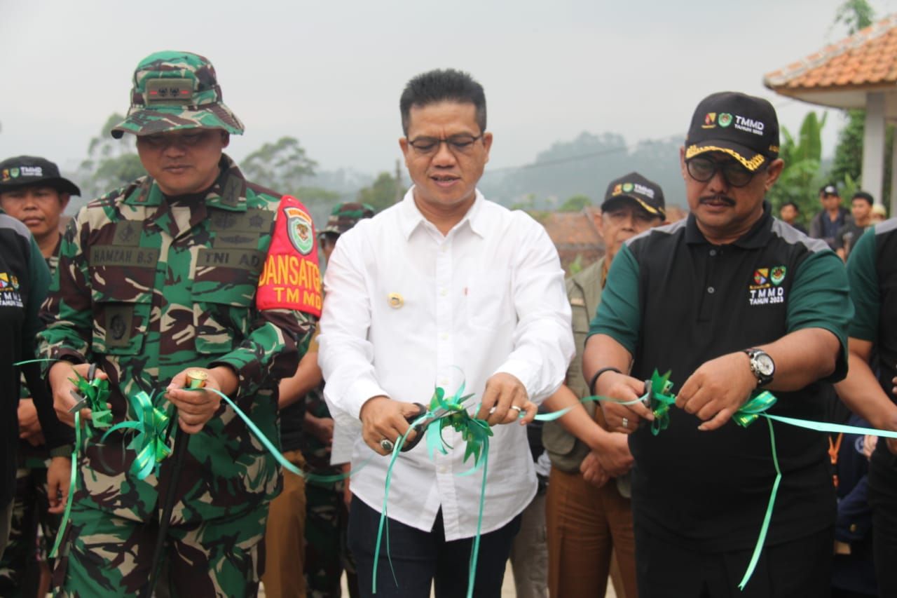 KABUPATEN BANDUNG (Beritakeadilan, Jawa Barat) – TNI Manunggal Membangun Desa (TMMD) Imbangan Kodim 0624/Kab. Bandung Tahun 2023 secara resmi di tutup Bupati Kab. Bandung Dadang Supriatna di Aula Desa Rawabogo Kecamatan Ciwidey Kab. Bandung, Selasa (27/06/2023).