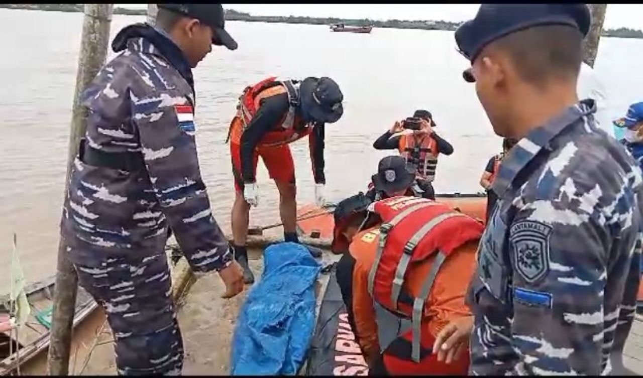 TNI AL Tanjung Datuk Bersama Tim SAR Berhasil Menemukan Jenazah Korban Tenggelam di Perairan Tembilahan