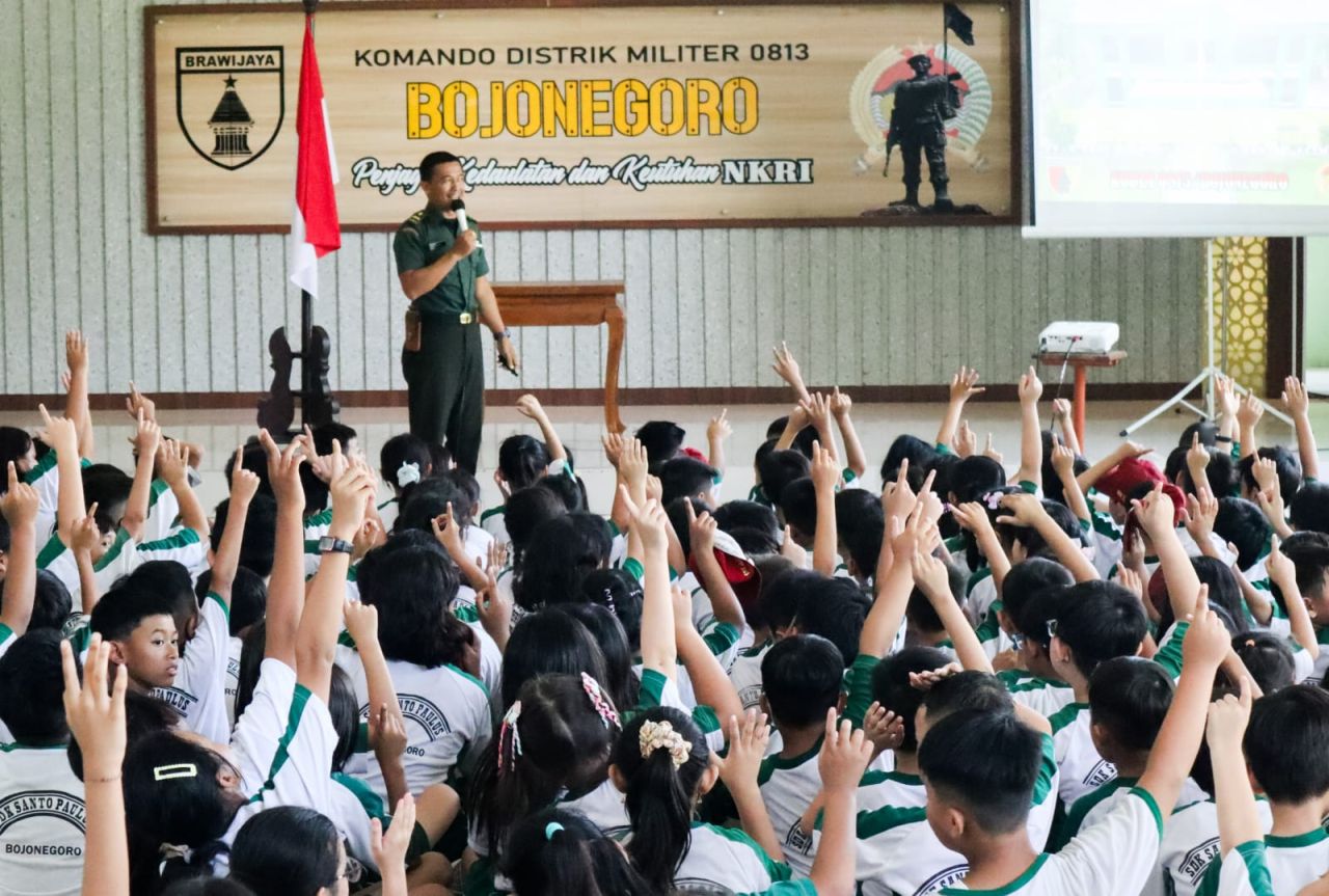 Dalam kunjungan itu, sebanyak 240 pelajar SD Katolik Santo Paulus Bojonegoro mulai dari kelas 1 sampai kelas 6 ini menerima pembekalan tentang wawasan kebangsaan, bela negara, anti kekerasan (bullying) dan pendidikan seksualitas dari para prajurit Kodim 0813 Bojonegoro.