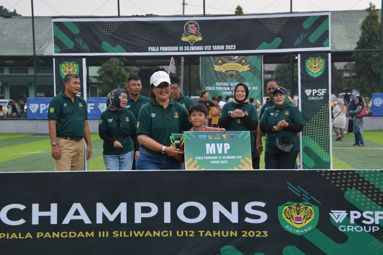 Pada kesempatan tersebut, Pangdam III/Slw menyerahkan trophy, medali dan uang pembinaan kepada tiap tim juara pada turnamen Mini Soccer U-12.
