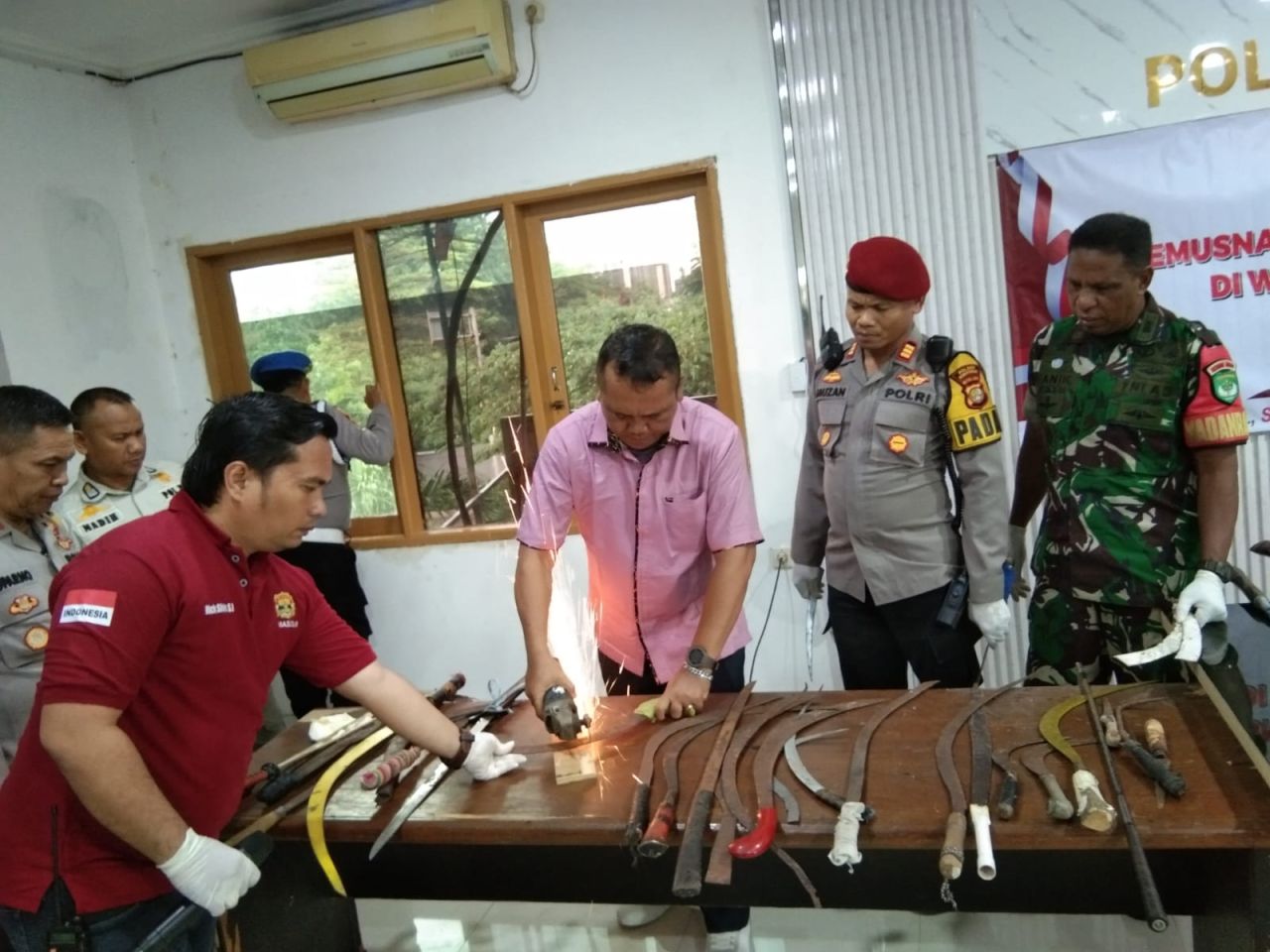 “Kegiatan pemusnahan barang bukti sajam ini bertepatan dengan menjelang bulan suci Ramadhan, pemusnahan barang bukti ini juga sebagai bentuk kinerja Polri dalam mengantisipasi terjadinya tawuran,” ungkapnya dalam press conference di Mako Polsek Kemayoran, Sabtu, (09/03).