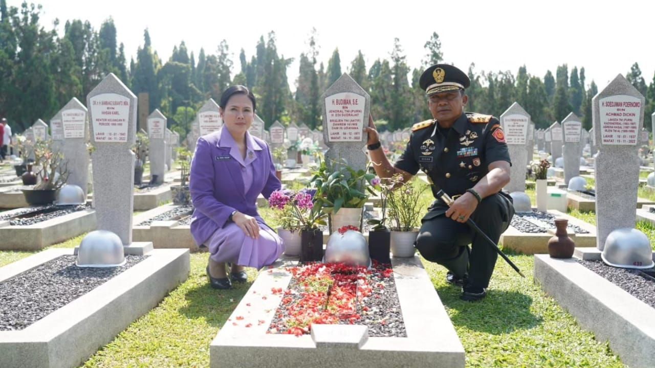 JAKARTA SELATAN (Beritakeadilan, DKI Jakarta) – Selesai mendampingi Kaisar Jepang, Pangdam Jaya/Jayakarta Mayjen TNI Mohamad Hasan dan Ibu Ketua IKKT Pragati Wira Anggini Cabang BS VI Ny. Ririx M.Hasan, sempatkan ziarah ke makam Letting Akabri 93 yang di Makamkan di TMPNU Kalibata.