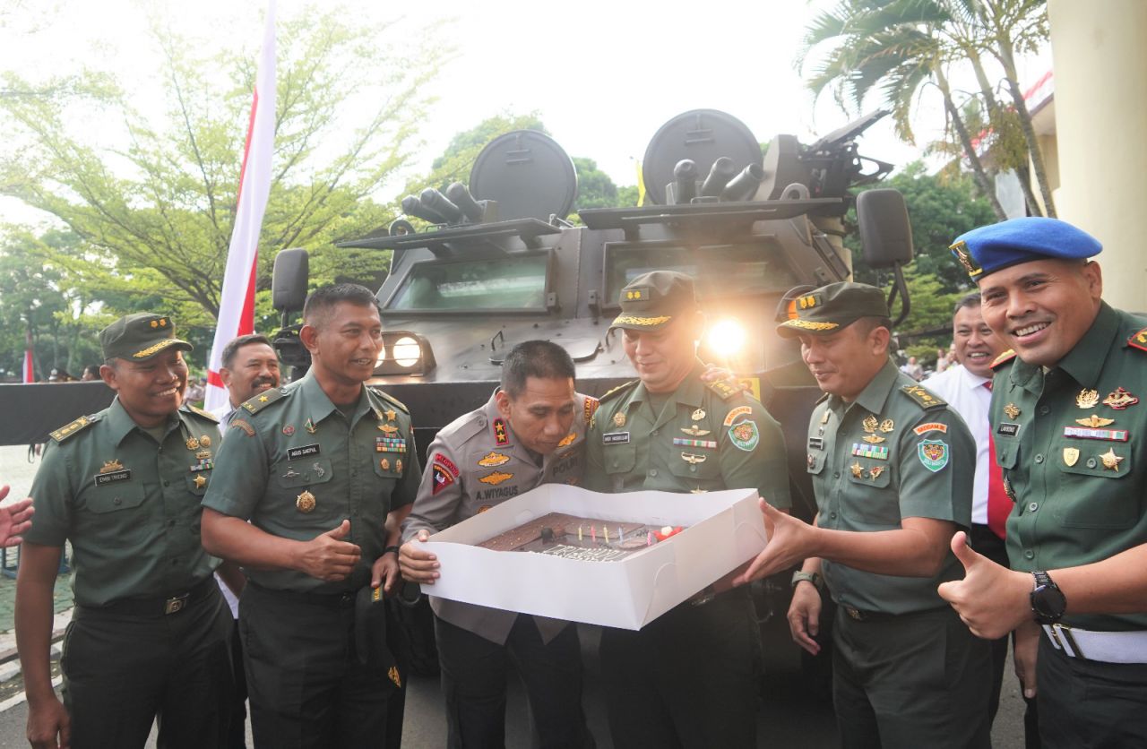 Pangdam III/Slw beserta seluruh anggota di lapangan secara serentak mengucapkan “Dirgahayu Polri ke-77”. Keceriaan di lapangan Kodam dan Polda langsung pecah dengan nyanyian lagu selamat ulang tahun.