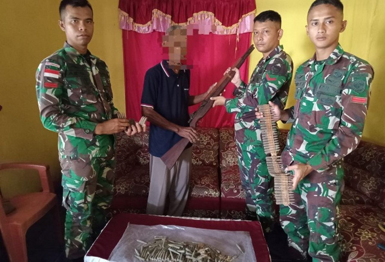 “Dari perbincangan itu, warga tersebut bercerita bahwa dirinya menyimpan senjata api laras panjang dan beberapa amunisi. Kemudian saat itu juga Senpi dan Muhandak diserahkan ke personil Satgas,” ucap Dansatgas.