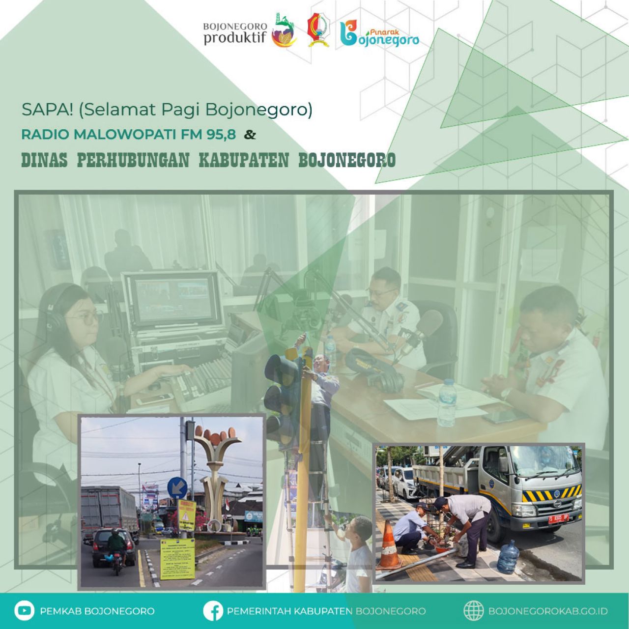 Dipandu penyiar Lia Yunita, SAPA! Malowopati FM menghadirkan narasumber Kepala Bidang Lalu Lintas Dishub Bojonegoro Bambang Loemawan, dan Kabid Pengembangan & Keselamatan Transportasi Dishub Bojonegoro Sukirno.