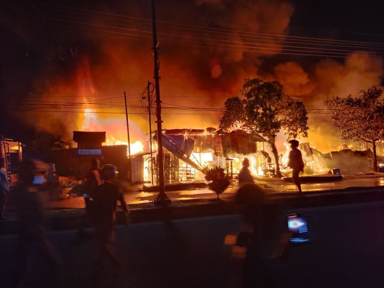 Menurut informasi yang diterima dari Serda Elisa bahwa kebakaran tersebut terjadi sekitar pukul 21.20 WIT terlihat api sudah menjalar dengan cepat ke kios dan kontrakan warga, dimana dugaan sementara diakibatkan oleh arus pendek (korsleting) listrik dari rumah kontrakan.