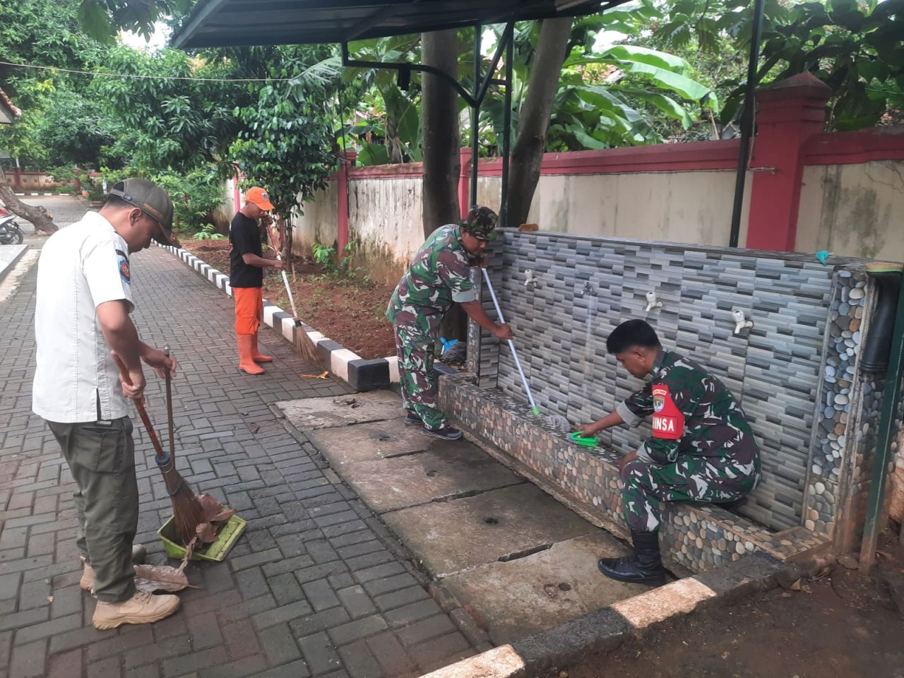Dalam pelaksanaannya, di hari pertama bulan Ramadhan ini Babinsa Peltu Indera, Serma Anwar Ujang bersama dengan pengurus Mushola, PPSU dan Satpol-PP Cilangkap, melakukan pembersihan tempat air wudhu, kaca dan lantai Mushola.