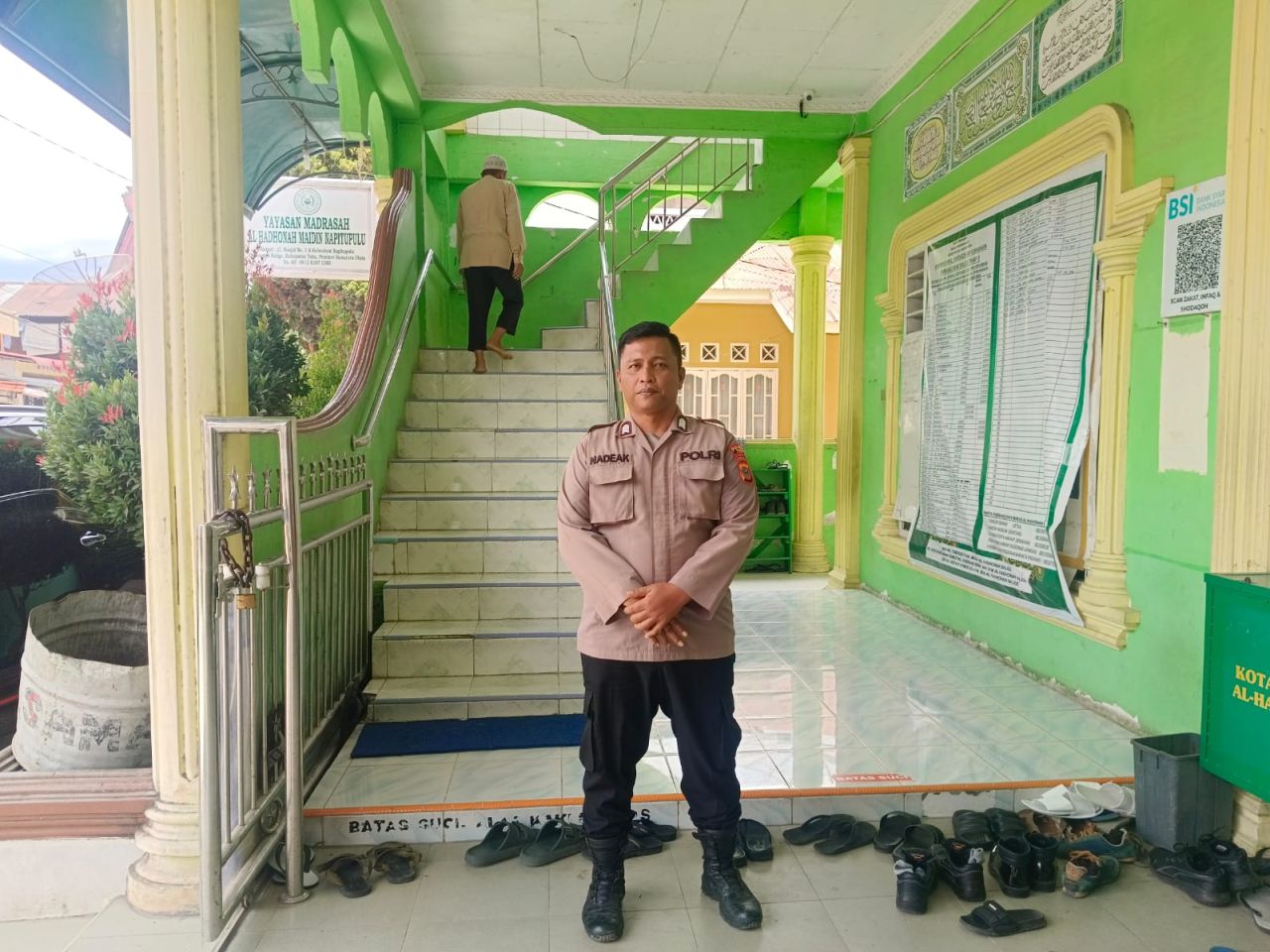 Kegiatan Pengamanan Shalat Jum’at yang dilaksanakan oleh Bhabinkamtibmas Polsek Balige, Bripka L Nadeak melaksanakan pengamanan di Masjid AlHadhonah Balige sebagai wujud kehadiran Petugas Polri ditengah-tengah Masyarakat. Jumat (10/10/2025)