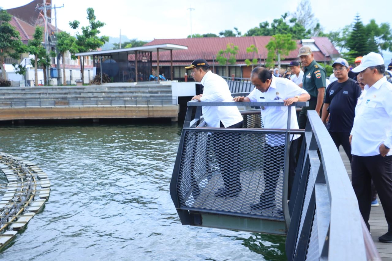 KABUPATEN SAMOSIR (Beritakeadilan.com, Sumatera Utara) - Bupati Samosir Vandiko T. Gultom bersama Wakil Bupati Ariston Tua Sidauruk meninjau persiapan venue utama Trail of The King (TOTK) di Segmen 5 Waterfront City Pangururan, Rabu (15/10/2025).